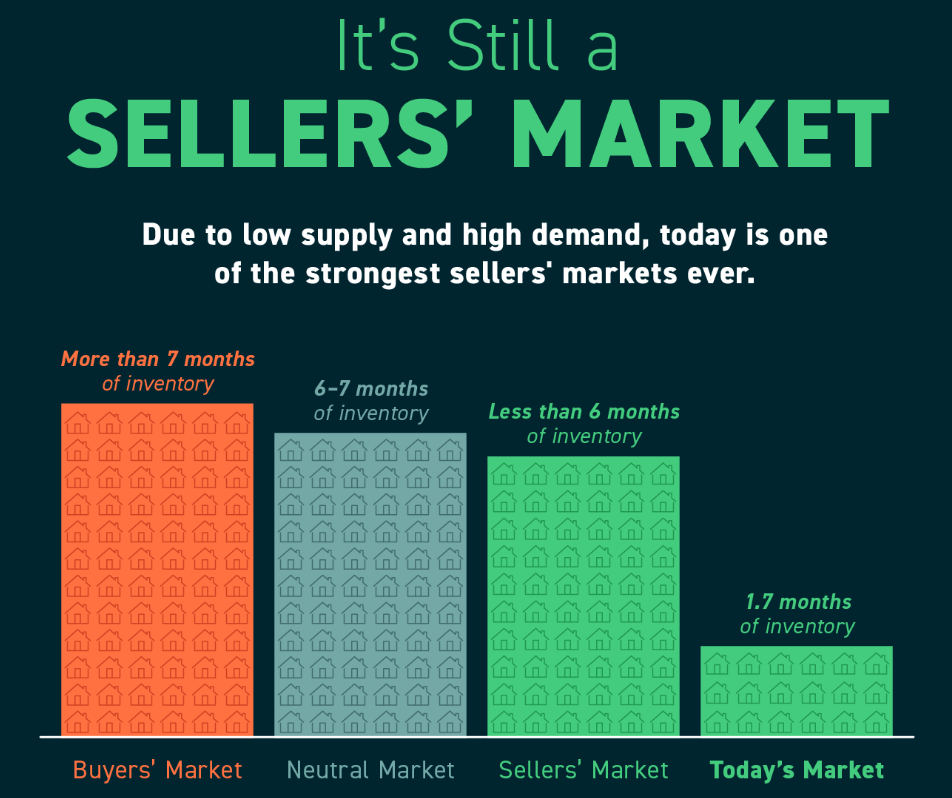 - Due to low supply and high demand, today is one of the strongest sellers’ markets we’ve seen.